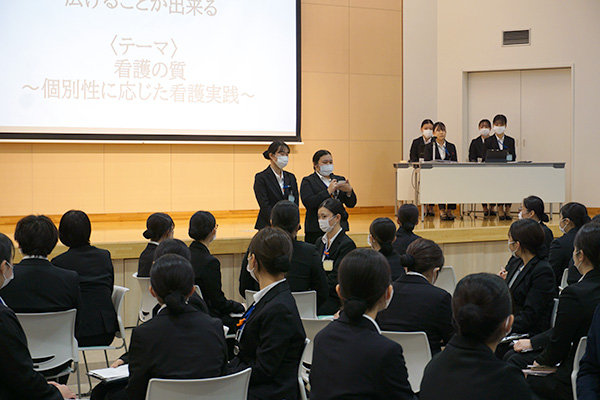 令和7年12月17日 「看護について仲間と意見交換ができ、多角的に看護観を深め互いに学びあう」ことを目標に3学年が講堂に集い、看護を語る会を開催しました。