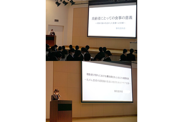 3年生が臨地実習で経験した2事例を選び、代表者2名が事例紹介を行いました。